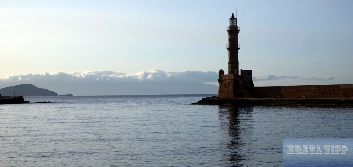 Der Leuchtturm von Chania bei Sonnenuntergang.
