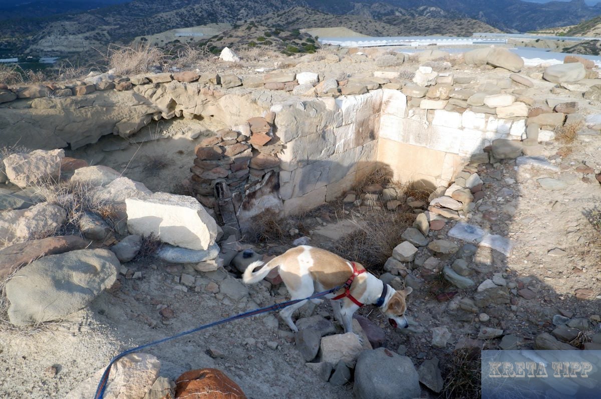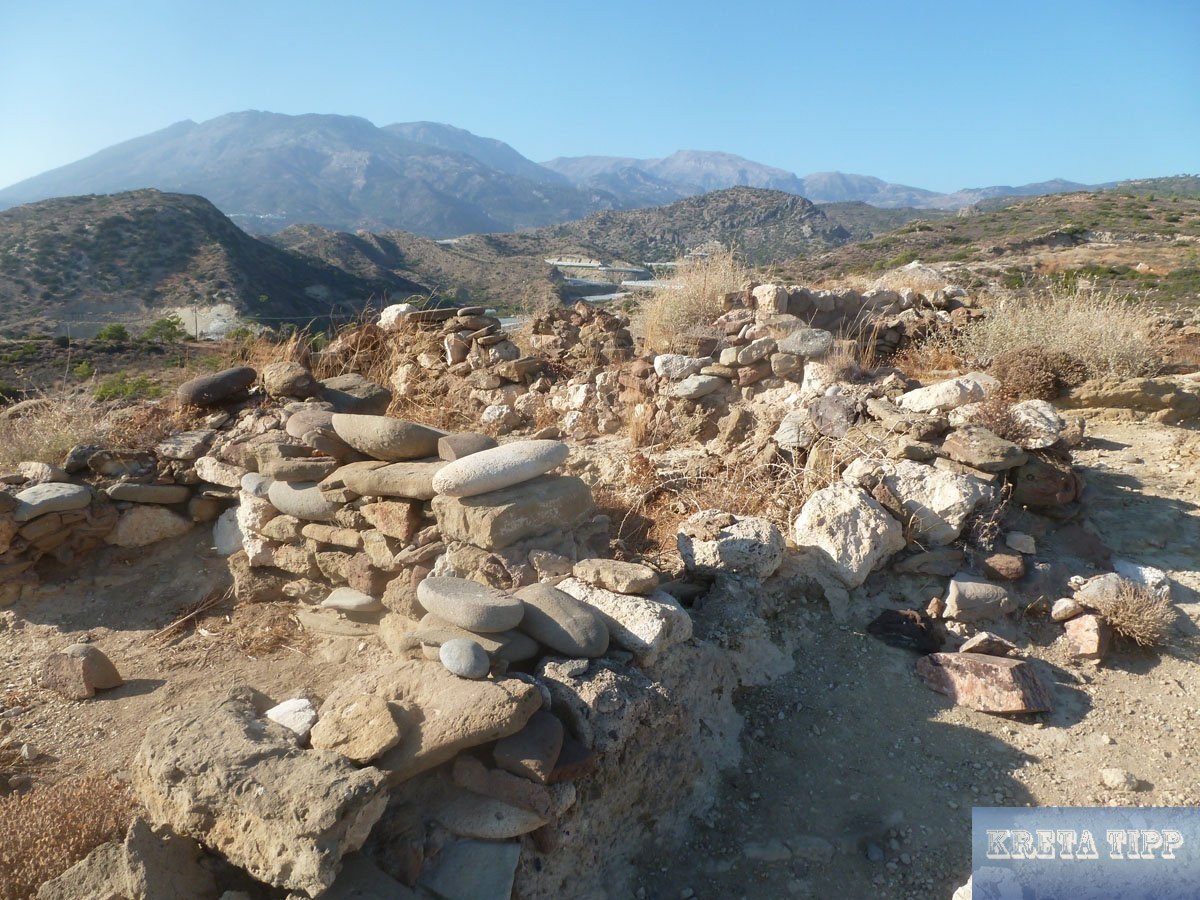 Ein paar Kilometer westlich von Neo Myrtos liegt der Kiln-Hügel direkt am Meer. Hier befindet sich oberhalb der Küstenstraße Fournou Koryfi, eine minoische Siedlung, welche in den 1960er Jahren von britischen Archäologen freigelegt wurde. Der Aufstieg von der Straße aus, wo man gut in der Nähe anhalten kann, ist zwar kurz, aber steil und nicht ganz einfach zu begehen.