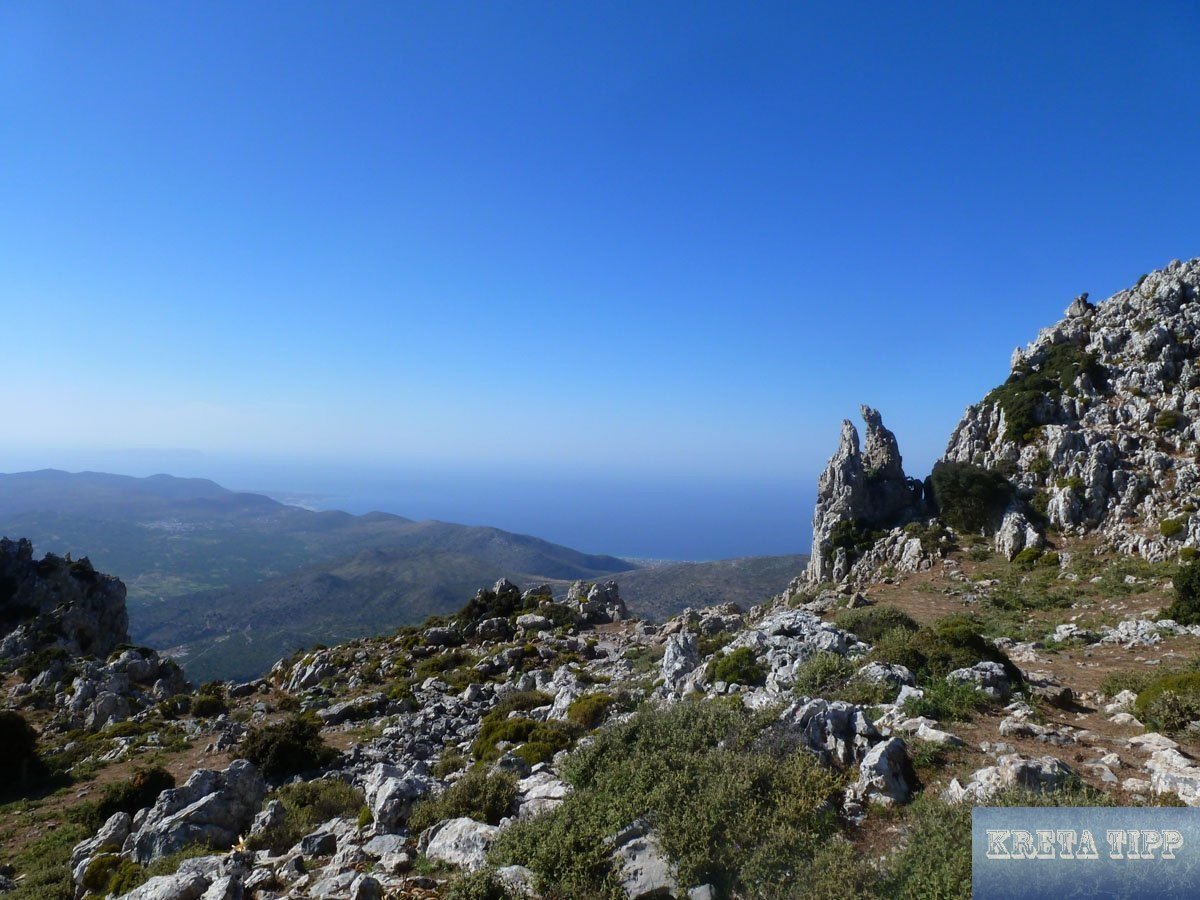 Der Pfad scheint nach kurzer Zeit einer alten ‚Esels‘-Strasse zu folgen, welche in die Ebene von Kasteli mit der byzantinischen Kirche Pandeleimon bei Pigi hinab führte.