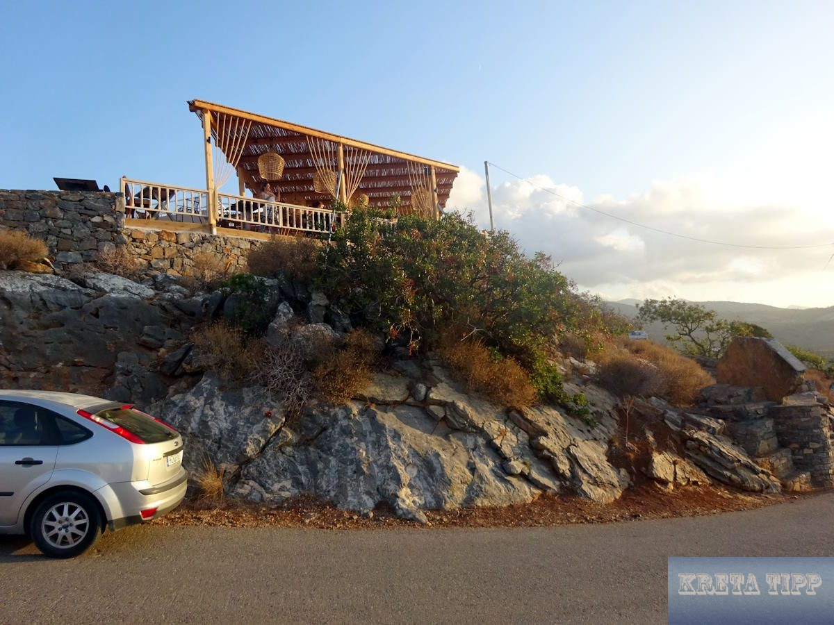 Zugang zum Weg zur Höhle. Vor wenigen Wochen ist dort ein Restaurant mit herrlicher Aussicht eröffnet worden.Wanderweg zur Milatos-Höhle.Auf dem Weg zur Höhle. Das Geländer zur Schlucht ist vollständig renoviert worden.Der flache Eingang in die Milatos-Höhle.Die kleine Kapelle in der Milatos-Höhle.Die Seitenöffnung der Höhle zur Milatos-Schlucht.
