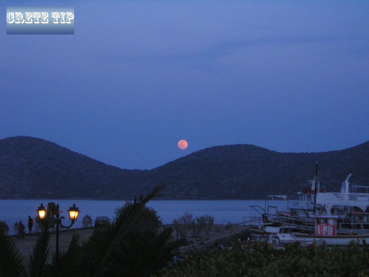 Rote Mond hinter der Halbinsel Elounda
